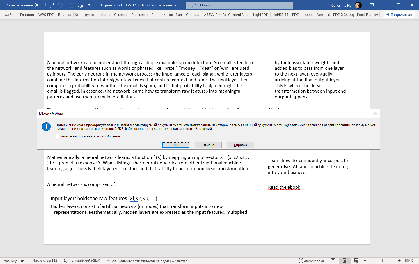 - Дождитесь, пока программа проанализирует и обработает документ.