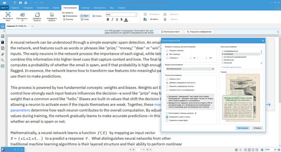 Этот продвинутое приложение для распознавания текста, которое работает на ПК. Вы можете импортировать отсканированный документ или создать PDF из файла, сохраненного в графическом формате JPG, PNG, BMP, GIF. Программа автоматически определяет наличие символов и предлагает включить режим распознавания.