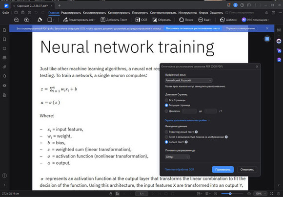 Современный PDF-редактор с ИИ-функциями. С его помощью можно не только решить проблему, как скопировать текст с фотографии на компьютере, но и справиться с дополнительными задачами. Искусственный интеллект может перевести документ на 40+ языков, вычленить из содержания ключевые пункты, проверить орфографию. Программа поддерживает функцию пакетной обработки — вы можете загрузить для OCR-распознавания сразу несколько файлов.
