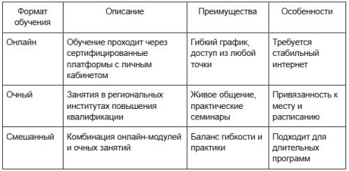 Учителя могут выбрать удобный формат в зависимости от занятости и возможностей. Каждый вариант имеет свои особенности.