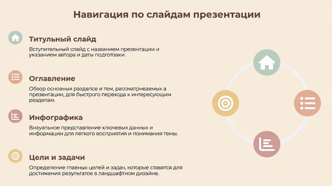 2. Навигационный слайд. Позволяет быстро перемещаться между разделами. На такой странице размещены специальные кнопки.