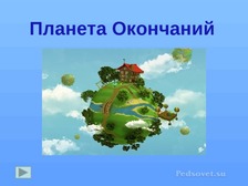 - Пока мы с вами обсуждали, наш корабль приблизился к созвездию. А вот и первая звезда – морфема. Она находится на самом краю созвездия, но от этого она не становится менее значимой. Это планета Окончаний. Очень интересные жители на этой планете. Не у каждого найдётся окончание. А у некоторых жителей оно не всегда проявляется. Почему это происходит? (Слайд №2)