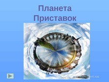 3. - С Корневой планетой мы ещё будем иметь возможность познакомиться ближе. А сейчас на очереди планета Приставок.(Слайд №9) На ней проживает около ста жителей. Само название планеты подсказывает нам, что это за морфема – приставка. Запишите это слово, выделите морфемы. Сделайте вывод.
