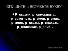 Р_сказни, р_списывать, р_сстегнуть, р_змен, р_змах, р_злив, р_скаты, р_спахать, р_списание, р_спись.