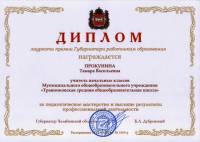 Диплом лауреата премии Губернатора Челябинской области работникам образования за педагогическое мастерство и высокие результаты профессиональной деятельности