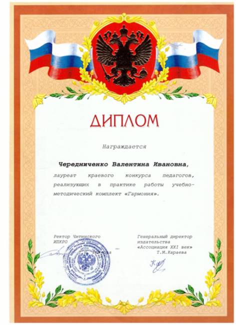 Диплом лауреата краевого конкурса педагогов, реализующих УМК "Гармония"