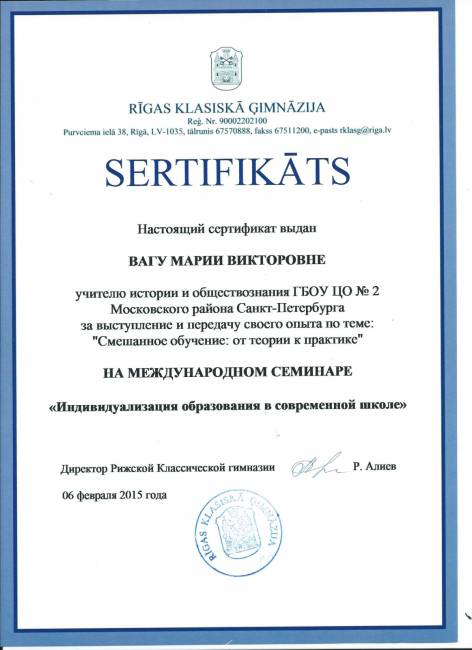 Международный семинар "Индивидуализация образования в современной школе" (выступление на тему "Смешанное обучение: от теории к практике").